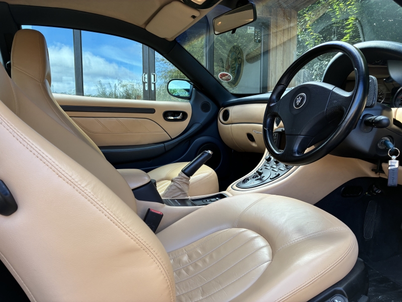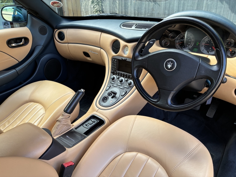 For sale is an absolutely immaculate, two owner example of the 4200 Coupe Cambiocorsa, presented in Blu Nettuno with Beige leather interior with Blu Scuro Dash and Door cards. The car is in stunning condition inside and out having covered just 58500 miles from new. It has a full service history and has been meticulously maintained throughout its life, having had its most recent service at Autoshield Maserati this week. The car also had an inspection and is sold with a clean bill of health. Being a 2004 MY car, it benefits from the upgrades made to the suspension and gearbox hardware and software as found in the 2005 facelift cars. The car benefits from the following additional specification to a standard car: Xenon Headlights, Reversing sensors, Electric folding heated door mirrors and Electric heated memory seats. If you are after a fully sorted example, with an excellent history, then look no further, the car drives beautifully and wants for nothing. It is testament to the previous keeper who owned the car for 18 years. Px welcome, videos and delivery available. Interior pics to follow next week.