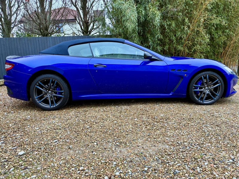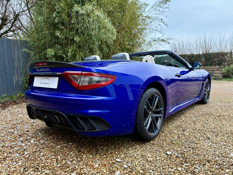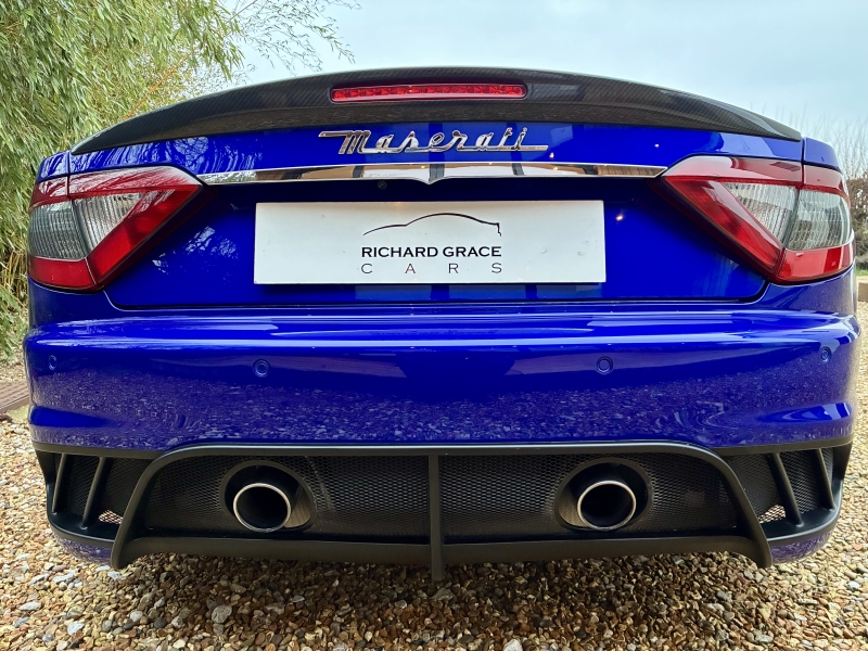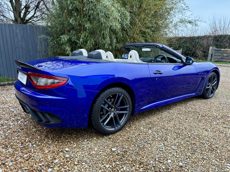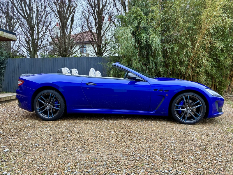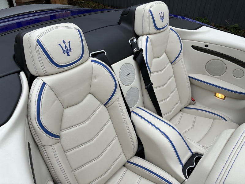 For sale is a beautiful two owner example of the Maserati Grancabrio MC Centennial Edition. This is one of five presented in Blu Inchiostro with Bianco Pregiato Leather with Blu Contrast Stitching. The Grancabrio MC Centennial Edition (Maserati Corse) is not simply a tweaked version of the Grancabrio, there are a number of significant improvements both aesthetically and mechanically. The MC is 48mm longer than the standard Grancabrio, has a redesigned bumper with high tailpipes and a pronounced extractor profile too. The boot lip spoiler is more pronounced and now incorporates the high-level third brake light. The bonnet incorporates two generous air outlets at the center to optimise cooling of the V8 engine, while two additional air outlets added in the front wings are used to cool the grooved and drilled brake discs. The car’s headlights feature LEDs for the daytime running light (DRL) function. Additionally, the headlights move up to 15 degrees left and right as you turn the car, allowing you better vision of the inside corner of the road at nighttime. Black exterior details also heighten the aggressive look. The front seats have been redesigned and offer greater comfort while also providing significantly more leg room for rear passengers. The steering wheel was also redesigned with the rim flattened at the top and bottom for greater manoeuvrability. While developing the chassis of the new GranCabrio MC, Maserati engineers equipped it with single-rate dampers that guarantee greater rigidity, dual-cast braking technology and the much improved ZF MC Auto Shift gearbox to access the extra horsepower, up to 460BHP in this model. The MC design wheels are in Grigio Mercury with Blu Accents to complete the transformation. The specification is as follows: Carbon Fibre Interior Trim, Nero Leather Backed Seats, Trident Stitched Headrest Logos in Blu, Blu Anodised Brake Calipers, Comfort Pack to include Heated Front Seats and Rear Park Distance Control, 20 inch MC Design Alloy Wheels in Grigio Mercury, MC Aluminium Racing Pedals, Auto Dimming Mirrors, Bose Surround Sound, CD changer & iphone Intergration & Navtrak ADR. The car is presented in outstanding condition and is sold with a completely clean bill of health having had a recent service and an inspection at Autoshield Maserati ready for its new home. Autoshield have maintained the car for three services, the two prior being at Maserati Main Dealerships. The car is sold with the 6 months comprehensive warranty which is further extendable if desired. PX welcome and finance can be arranged. Videos and delivery available.