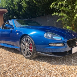 For sale is an outstanding example of the much sought after Maserati Gransport MC Victory. Only 180 MC Victory models were made worldwide, we believe 12 of these cars remain in the UK, this being one of the flagship Blu Victory examples. It is presented in Blu Victory with Nero Leather and Alcantara interior. It has Nero carpets and Blu stitching and also benefits from the following specification: Carbon Fibre Pack to include Door Sills & Inserts, Carbon Fibre Boot Spoiler, Carbon Fibre steering wheel, Xenon headlights, Rosso Brake Calipers and Becker Infotainment Hifi. The MC Victory was built to honour the Maserati MC12 winning the 2005 FIA GT championship. As well as boasting a higher level of standard equipment than the Maserati GranSport on which it is based, the MC Victory offers a variety of features that clearly link it to the Maserati MC12, and enhance its driving dynamics. Externally, the Maserati Gransport MC Victory is immediately identified by its blue carbon fibre front and rear spoilers and the Italian flag recessed into the front wings. The enlarged front splitter generates more downforce at high speeds, as do the extended side skirts, modifications which improve the car's high speed stability and dynamic responsiveness. Its agility is further improved by more direct and precise steering. The cabin's carbon fibre components are in blue to match the exterior spoilers. They are combined with a selection of leathers and Alcantara trim, which cover the upper dashboard, the door panels and the centre sections of the carbon fibre racing seats, the overall effect dramatically heightening the interior's sporting ambience. Having covered just 38800 miles from new, this example is presented in pristine condition, having been inspected and serviced at Autoshield Maserati and is sold with a fully clean bill of health. It has also has a new clutch fitted. This is a rare opportunity to purchase a fantastic car with huge specification and provenance. Price shown includes full, comprehensive 6 month warranty.