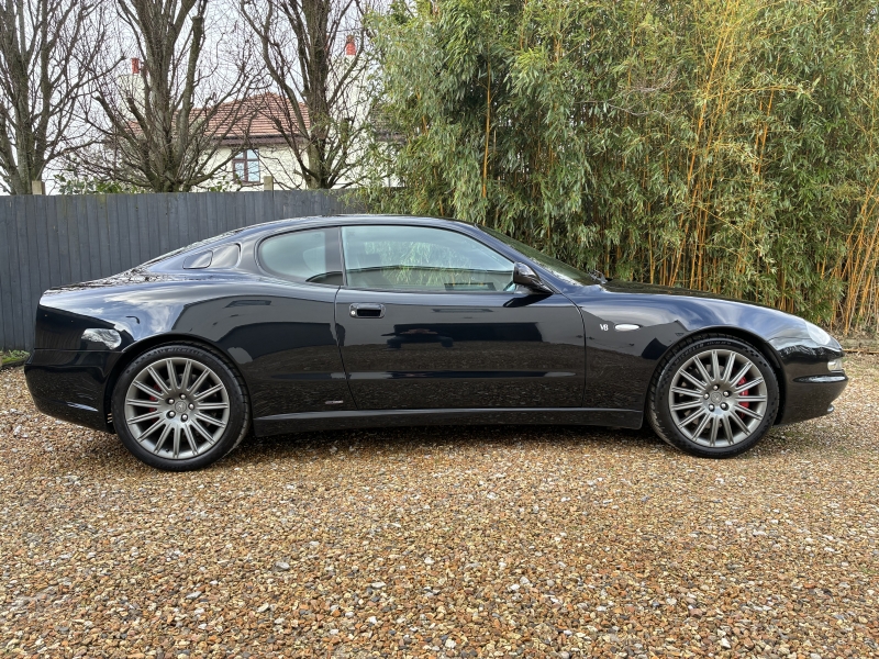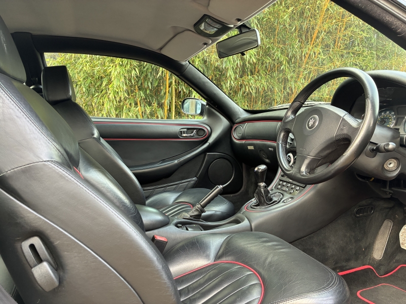For sale is an excellent example of the Maserati 3200 GT Assetto Corsa. This is a very rare find, being the GT with the Getrag 6 speed manual gearbox. It is presented in Nero Carbonio with Full Nero Leather and Rosso piped Interior. The Assetto Corsa is set apart by Carbon Fibre Interior Trim, 18 inch 15 Spoke Grigio Titanium Alloy Wheels with Rosso Calipers, Assetto Corsa Performance Handling Pack which includes lowered suspension, 15mm lower than standard, with stiffer springs, larger anti roll bar and a modified steering rack, drilled Aluminium Racing Pedal Set and Assetto Corsa Aluminium Kick Plates. This is the only the second 3200 Assetto Corsa we have ever had with a manual gearbox. It is presented in excellent condition throughout and the drive is superb.