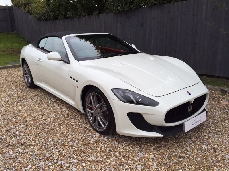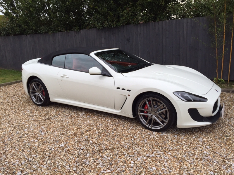 For sale is a beautiful example of the Maserati Grancabrio MC. It is presented in Bianco Eldorado with Rosso Corallo Leather with Bianco Contrast Stitching and Nero Carpets. The Grancabrio MC (Maserati Corse) is not simply a tweaked version of the Grancabrio, there are a number of significant improvements both aesthetically and mechanically. The MC is 48mm longer than the standard Grancabrio, has a redesigned bumper with high tailpipes and a pronounced extractor profile too. The boot lip spoiler is more pronounced and now incorporates the high-level third brake light. The bonnet incorporates two generous air outlets at the center to optimise cooling of the V8 engine, while two additional air outlets added in the front wings are used to cool the grooved and drilled brake discs. The car’s headlights feature LEDs for the daytime running light (DRL) function. Additionally, the headlights move up to 15 degrees left and right as you turn the car, allowing you better vision of the inside corner of the road at nighttime. Black exterior details also heighten the aggressive look. The front seats have been redesigned and offer greater comfort while also providing significantly more leg room for rear passengers. The steering wheel was also redesigned with the rim flattened at the top and bottom for greater manoeuvrability. While developing the chassis of the new GranCabrio MC, Maserati engineers equipped it with single-rate dampers that guarantee greater rigidity, dual-cast braking technology and the much improved ZF MC Auto Shift gearbox to access the extra horsepower, up to 460BHP in this model. The MC design wheels are in Grigio Titanio to complete the transformation. The specification is as follows: MC (Maserati Corse) Handling Package, Nero Exhaust Pipes, Nero Window Trims, Nero Headlight Surrounds, Nero carpets & mats, Nero Safety Belts, Nero Dashboard, Rosso brake calipers, Comfort Pack to include Heated front seats and Front & Rear Park Distance Control, 20 MC Design Alloy Wheels in Grigio Mercury, Aluminium Racing Pedals, Auto Dimming Mirrors, Bose Surround Sound, CD changer & iphone Intergration & Navtrak ADR. The car is presented in immaculate, unmarked condition. It is sold with a completely clean bill of health having recently had its 12500 mile 2 year service at Maserati. The car is sold with the remainder of the Maserati warranty. PX welcome and extremely competitive finance can be arranged.