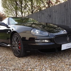 For sale is a superb example of the Maserati Gransport V8 LE in Nero Carbonio with full Beige leather, Nero dash top and door card and Nero carpets. It has a full Maserati Main Dealer Service History, and has had a full service and inspection at Autoshield Maserati ready for sale. Any issues found at inspection have been rectified and the car now has a full clean bill of health. It also had a new clutch fitted less than 3000 miles ago. Being a late 2005 LE spec version it benefits from the following, in addition to the huge standard specification: Full leather heated electric memory seats, Leather inserts on dashboard, Leather door cards, Leather headlining, Electro-chromatic rear-view mirror, Xenon headlights, Grigio brake calipers, Rear parking sensors, Becker Auditorium 200 hi-fi with Satellite Navigation, 6CD Changer and 19'' trofeo alloy wheels. In addition the car also has carbon fibre trim to the doors and sill plates. The brakes & tyres are as new all round. This is a rare opportunity to purchase a fantastic car in this superb colour combination, in superb condition. Price shown includes full, comprehensive 6 month warranty.