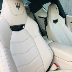 For sale is a wonderful example of the Maserati Granturismo Sport MC Shift. This 2014/14 version is presented in Nero Carbonio with Pearl Beige Leather with Nero contrast stitching. It is in superb condition as one would expect from such a low mileage example. This particular example has the following specification: 20" Stradale Design Alloy wheels in Nero, Rosso brake calipers, Aluminium Racing Pedals, Trident Embroidered Head Rests in Nero, Piano Black Inlays, Grigio Mercury Trim, Nero Leather Backed Seats, Nero Alcantara Headlining, Bose Surround Sound with iPod connectivity, Multi-zone climate control, Comfort Pack, to Include Heated Electric Seats with Driver Memory, Front and Rear Park Distance Control, Satellite Navigation, Xenon Headlamps, Electro-chromatic Rear View Mirror, Rain sensitive wipers, iPod connection, Bluetooth Telephone Preparation, TPMS (Tyre Pressure Monitoring System) and Security System with NavTrak ADR. The 2014 Granturismo Sport MC Shift benefits from new sport seats and the Granturismo Sport front bumper and black exterior detailing, including the headlight and window surrounds and exhaust pipes, for a more aggressive look. The car also benefits from other refinements made to the 2014 Model Year car, horsepower is up to 460bhp with 520nm of torque at 4750rpm, the double wishbone suspension features a new setup and is controlled by the Sport Skyhook System, which has been specially developed for this version. The car has a full Maserati and Maserati Specialist Service History having had the its second service in June last year at Emblem Sports Cars in Poole. It will require the next service in June 2020 or at 27500 miles. It has been inspected at Autoshield Maserati, and given a completely clean bill of health. Price shown includes 6 month comprehensive warranty which can be further extended if desired.
