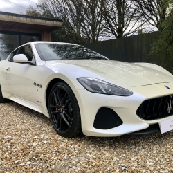 For sale is a superb example of the 2018MY Maserati Granturismo Sport. This 2018/68 version is presented in Bianco Birdcage with Nero Leather with Rosso contrast stitching. It is in mint condition as one would hope from such a low mileage example. This particular example has the following specification: 20" MC Stradale Design Alloy wheels in Matt Graphite, Rosso brake calipers, Aluminium Racing Pedals, Trident Embroidered Head Rests in Rosso, Carbon Fibre Interior Trim, Nero Leather Backed Seats, Nero Headlining, Multi-zone climate control, Comfort Pack, to Include Heated Electric Seats with Driver Memory, Front and Rear Park Distance Control, MTC+ Satellite Navigation, Bi-Xenon Headlamps, Electro-chromatic Rear View Mirror, Rain sensitive wipers, Harmon Kardon Surround Sound with iPod connectivity, Bluetooth Telephone Preparation and Security System.