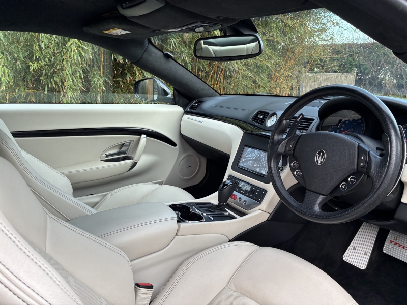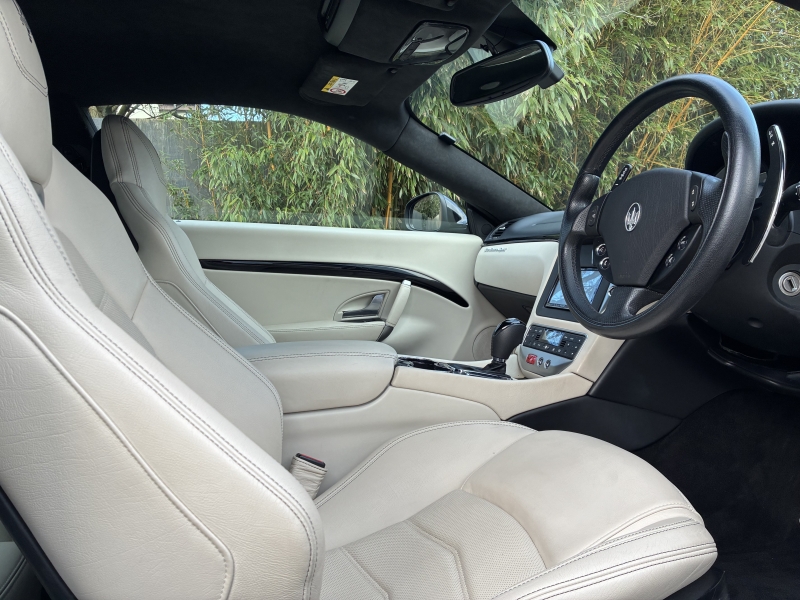 For sale is an outstanding example of the Maserati Granturismo Sport MC Auto Shift. This 2015/64 version is presented in Nero Carbonio with upgraded Pearl Beige Poltrona Frau Perforated Leather with Nero Contrast Stitching. It is in outstanding condition as one would expect from a cherished example which has covered just 18000 miles. This particular example has the following specification: 20 inch Neptune Design Alloy Wheels in Silver, Rosso Brake Calipers, Nero Stitched Headrests, Leather Backed Seats, Nero Carpets and Dash, Grigio Alcantara Headlining, Piano Black Interior Trim, Multi-zone Climate Control, Heated Front Seats with Memory and Easy Entry, Front and Rear Park Distance Control, Satellite Navigation, Xenon Headlamps, Electro-chromatic Rear View Mirror, Rain sensitive wipers, Bose Surround Sound, Bluetooth Telephone Preparation and Security System with NavTrak ADR. The car also benefits from a Pioneer Multimedia system having been fitted with Apple CarPlay and Android Auto functions. The ZF 6-speed automatic gearbox with hydraulic torque converter guarantees a comfortable ride with no reduction in performance. The transmission is controlled by the MC Auto Shift software, with rev limiter override, double declutch and high-performance start function. There are five operating modes: Auto Normal, Auto Sport, Manual Normal, Manual Sport and Ice. The 2015 MY Granturismo Sport MC Auto Shift benefits from new sport seats and the Granturismo Sport front bumper and black exterior detailing, including the headlight and window surrounds and exhaust pipes, for a more aggressive look. The car has a fully documented service history and has been fully inspected at Autoshield Maserati and is sold with a completely clean bill of health. It has also had new front brake discs and pads fitted. Price shown includes 6 months comprehensive warranty which can be further extended if desired. Px welcome, videos and delivery available. Finance can be arranged through our broker.
