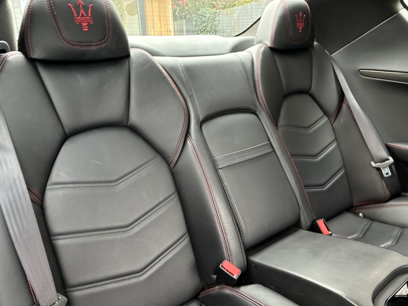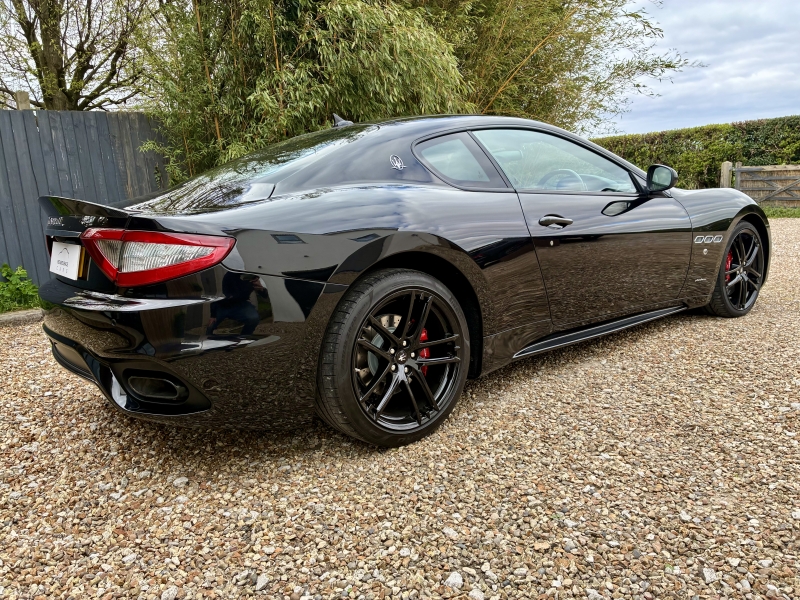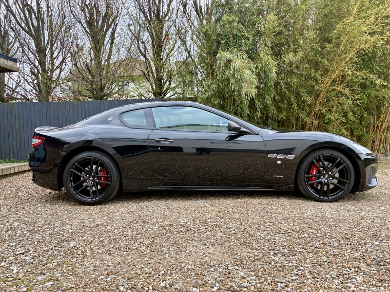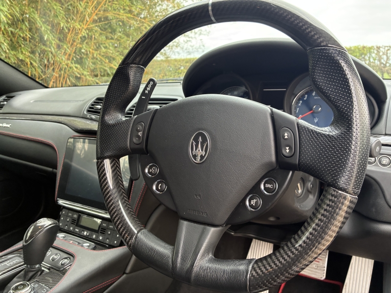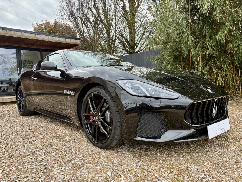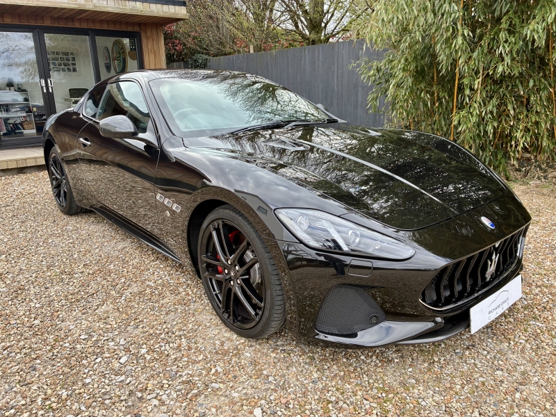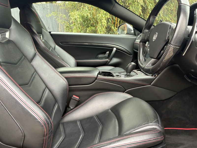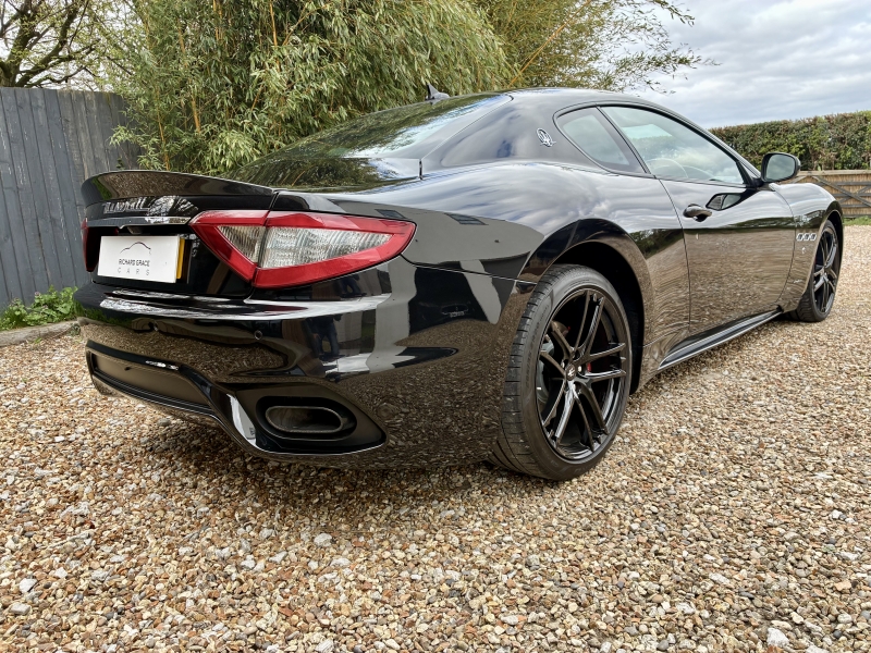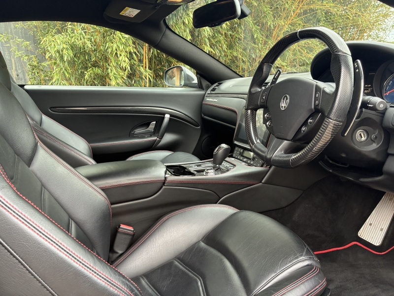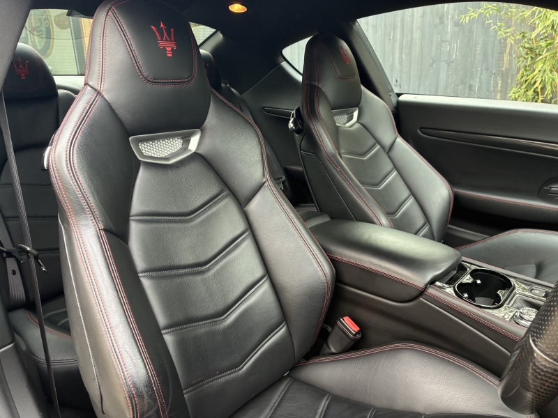 For sale is an outstanding example of the third generation Maserati Granturismo Sport. This 2018/68 example is presented in Nero Carbonio with Nero Leather Interior with Rosso contrast stitching and Nero Carpets. It is in outstanding condition as one would hope from a low mileage example. The car has an outstanding specification, with over £20000 worth of factory options fitted. The specification is as follows: MC Stradale Design Bonnet, 20 inch MC Stradale Design Alloy wheels in Nero, Carbon Fibre Front Splitter, Wing Mirrors, Door Handles and Rear Lip Spoiler, MC Sportline Carbon Fibre Sill Plates, Rosso Brake Calipers, Aluminium MC Racing Pedals, Trident Embroidered Head Rests in Rosso, MC Sportline Carbon Fibre Interior Trim, Carbon Fibre Steering Wheel, Carbon Fibre Gear Lever, Carbon Fibre Transmission Tunnel, Nero Headlining, Multi-zone climate control, Comfort Pack, to Include Heated Electric Seats with Driver Memory, Front and Rear Park Distance Control, MTC+ Satellite Navigation with Apple Car Play and Android Auto, Bi-Xenon Headlamps, Electro-chromatic Wing and Rear View Mirrors, Rain sensitive wipers, Harmon Kardon Surround Sound with iPod connectivity, Bluetooth Telephone Preparation, TPMS and Security System. The 2019 MY Granturismo Sport benefits from a number of significant changes to the earlier car. The restyled front end has a new oval front grille and a revised front splitter. It has a new trim, exclusive to the Sport version, for the steeply raked Bi-Xenon headlights with Adaptive Light Control. Additionally, the headlights with LED Daytime Running Lights integrate perfectly and feature a steel finish. This is paired with a new rear extractor to optimise and balance out downforce at speed. An all-new Infotainment system includes a high-resolution 8.4 inch Maserati Touch Control Plus unit (MTC+) that allows simple and intuitive control of features such as audio, navigation and comfort functions. There is also a user-friendly rotary controller in the central console and the system is compatible with Apple CarPlay and Android Auto smartphone mirroring functions. MTC+ can be operated in three ways: via the touch-screen, the rotary controller or Siri voice command. There is also a new 10 speaker premium audio system from Harmon Kardon.