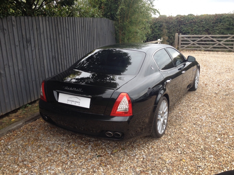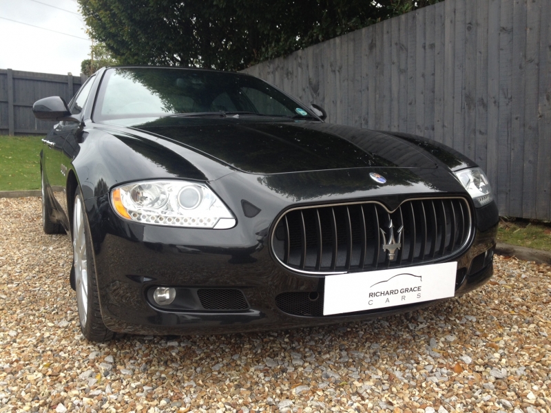 For sale is a stunning example of the facelift 2009 MY Maserati Quattroporte. It is presented in Nero Carbonio with Nero full leather and contrasting Bianco stitched interior. It has a full Maserati service history with the most recent service being completed this week ready for sale. The car benefits from a huge standard specification plus the following costly options: 'Handling Package', featuring upgraded big brakes from the GTS, 'Active' paddle shift, 20 Trident alloy wheels and Rosso brake calipers. It also has Alcantara headlining, Bose stereo and Navigation system, Piano Black trim, Electric Memory Heated front seats, Electric Rear Heated Seats, Rear Parking Sensors and Power Sunroof. The car has new front and rear brake pads as well as very good tyres all round and is presented in immaculate, unmarked condition throughout. It has been inspected at Autoshield Maserati in Manchester and is sold with a completely clean bill of health. The car is also sold with a comprehensive 6 month warranty. This is a rare opportunity to purchase a MY 2009 Quattroporte with excellent specification in wonderful condition.