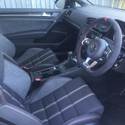 For sale is one of the first UK which we now have in, it is finished in Metallic Black and comes with optional Air Conditioning. The Golf GTI Clubsport S is the fastest front-wheel drive production car around the Nurburgring. Honda, Seat and Renault have been squabbling over that particular honour for the past year or so, but by recording a 7min 49.21secs lap in April Volkswagen usurped them all, bettering Honda’s Civic Type R by 1.4 seconds. The Clubsport S will be limited to 400 units, with 150 right-hand drive cars set to come to the UK. But if you haven't got your name down already you're out of luck, as every one of those UK-allocated cars has been sold out. The Clubsport S becomes the fastest and most exclusive model in an extensive line up of high-performance, front-wheel drive Golfs. The Golf GTI is the entry-level version, followed by the GTI Performance and the GTI Clubsport Edition 40, the model that marks 40 years of VW’s hot hatch and that forms the basis for the Clubsport S. With 306bhp the Clubsport S becomes the most powerful Golf ever, as well as the fastest. It uses the same EA888 2-litre, four-cylinder turbo unit that powers all high performance Golfs, tweaked here to deliver its peak output between 5800-6500rpm, with 280lb ft of torque available from 1850-5700rpm. For reference, the Clubsport delivers a peak power output of 286bhp on temporary overboost. The only transmission option is six-speed manual, carried over unchanged from the Clubsport. Drive is sent to the front wheels and apportioned between them by an electronically controlled limited slip differential. The Clubsport S carries over the Clubsport’s aerodynamic revisions. The front splitter and rear wing not only cancel out the 60kg of lift generated by the GTI Performance, they actually produce a small amount of downforce. VW’s engineers quote 8kg on the front axle and 17kg at the rear. They’re modest numbers, but with no lift to contend with VW has been able to make significant changes to the chassis balance. With so much more stability at high speed than before the engineers can dial in a more neutral balance, which reduces understeer and promotes oversteer characteristics. In a front-wheel drive car that translates into more speed through corners. From there the Clubsport S starts to distinguish itself from the Clubsport. The chassis gets bespoke damper tuning, new front knuckles, more camber front and rear with less toe and a lightweight front aluminium subframe. Those revisions are all designed to make the car more stable at speed, and reduce understeer. Bespoke Michelin Pilot Sport Cup 2 tyres are standard fit (they’re optional on the Clubsport) and the brakes get specific pads and aluminium bowls that enable the discs to expand under sustained track work without warping. Some 30kg has been saved over the Clubsport by removing the rear seats and some sound deadening material. The car’s Individual drive mode has been configured specifically for the Nurburgring Nordschleife, which is notoriously bumpy. It slackens the dampers off to deal with the circuit’s countless bumps and high kerbs while keeping all other parameters in their most aggressive settings.A DSG gearbox would add 20kg to the overall weight of the car, so the engineers very quickly ruled it out as an option. Most cars will come fitted with air conditioning, but around five per cent will do without, saving a further 15kg. The exhaust, finally, is a freer breathing item to help achieve the lift in power.